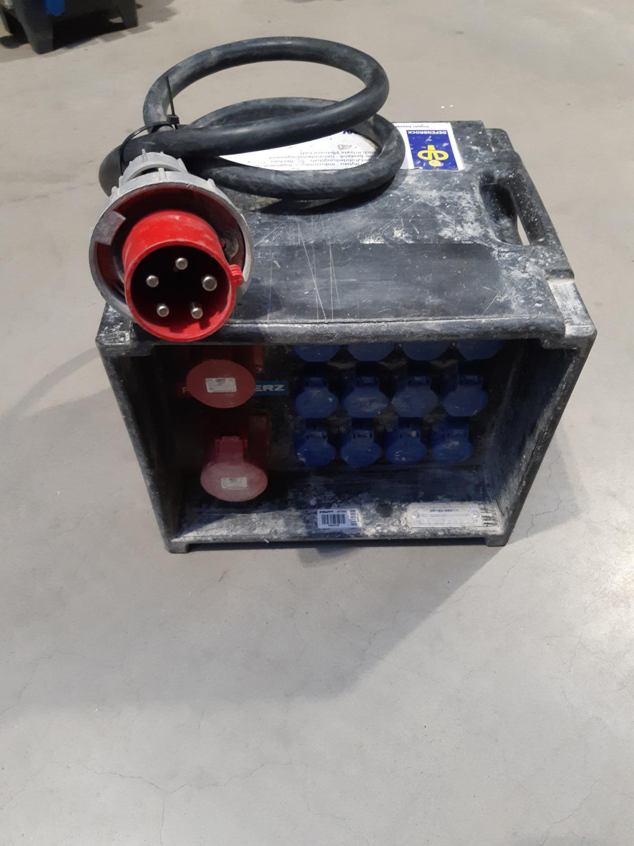 1x 32A CEE , 1x 16A CEE , 12x Schuko Steckdose (230V)